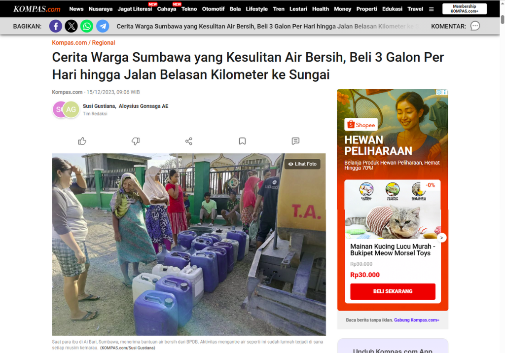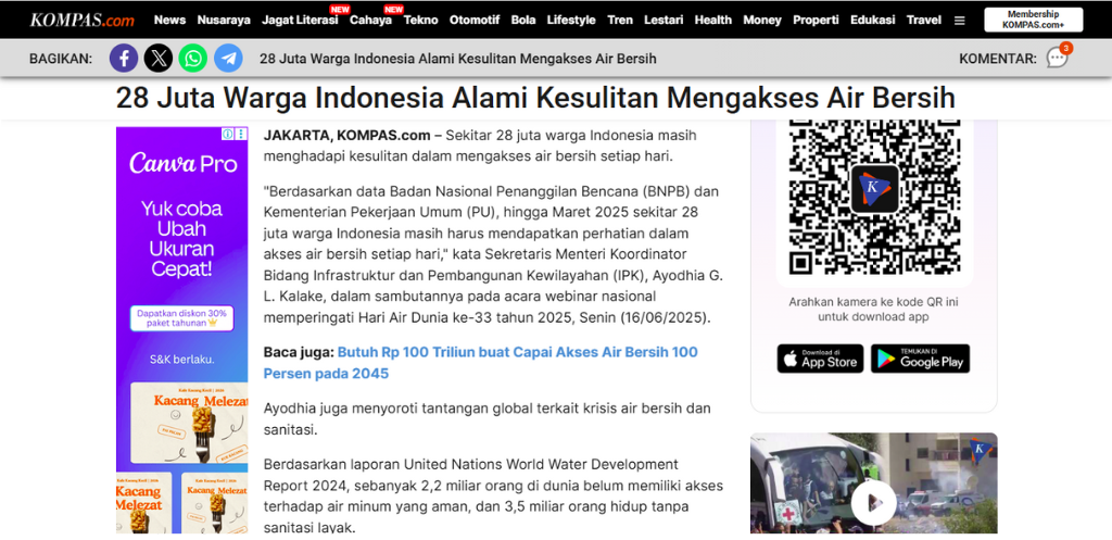 Krisis air adalah masalah kemanusiaan dan keberlanjutan. Air kotor menimbulkan masalah baru seperti diare, penyakit kulit, ISPA, bahkan stunting.